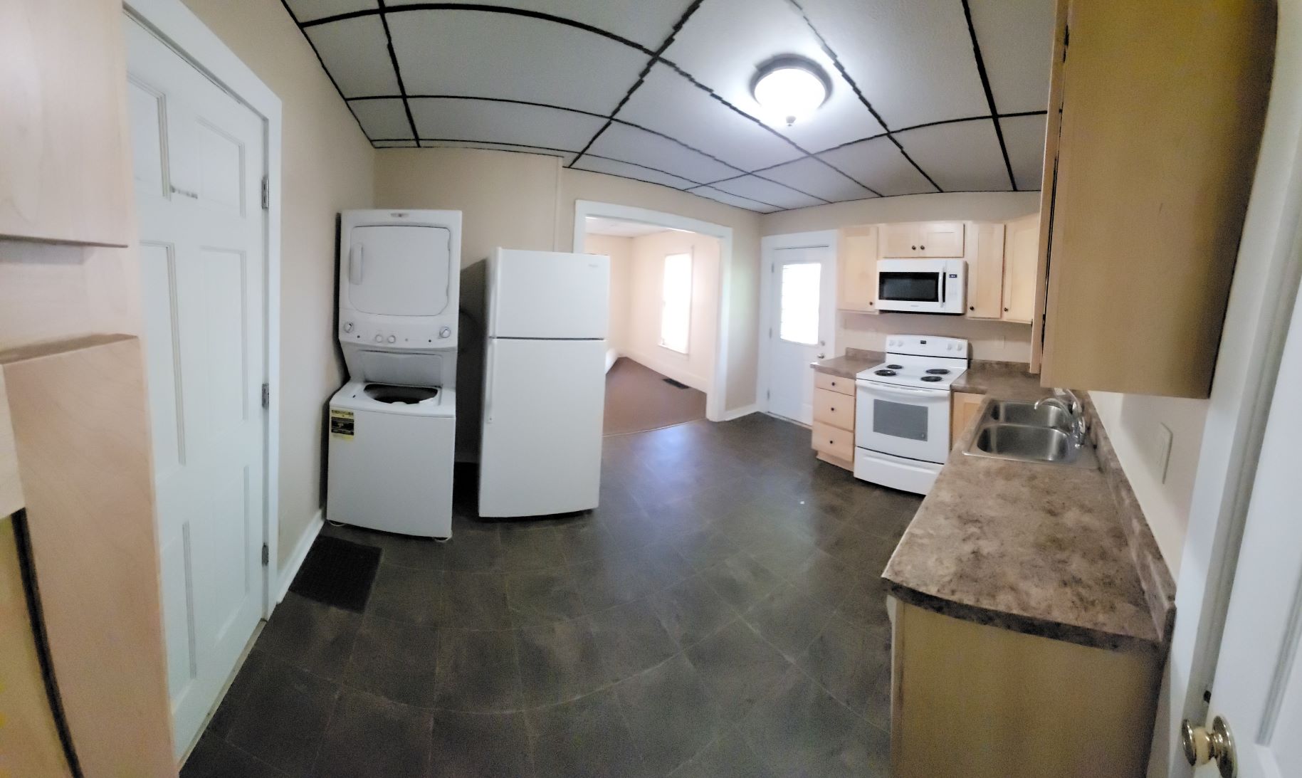 Cozy 3 bedroom house with great large side yard is ready for you! House has large living room, spiral stair case and ample off street parking. Location is close to campus and still a short walk to downtown. A stand up washer and dryer in the kitchen means no more trips to the laundromat! Dishwasher, microwave and central air too. Call today to make this special one-of-a kind unit yours!